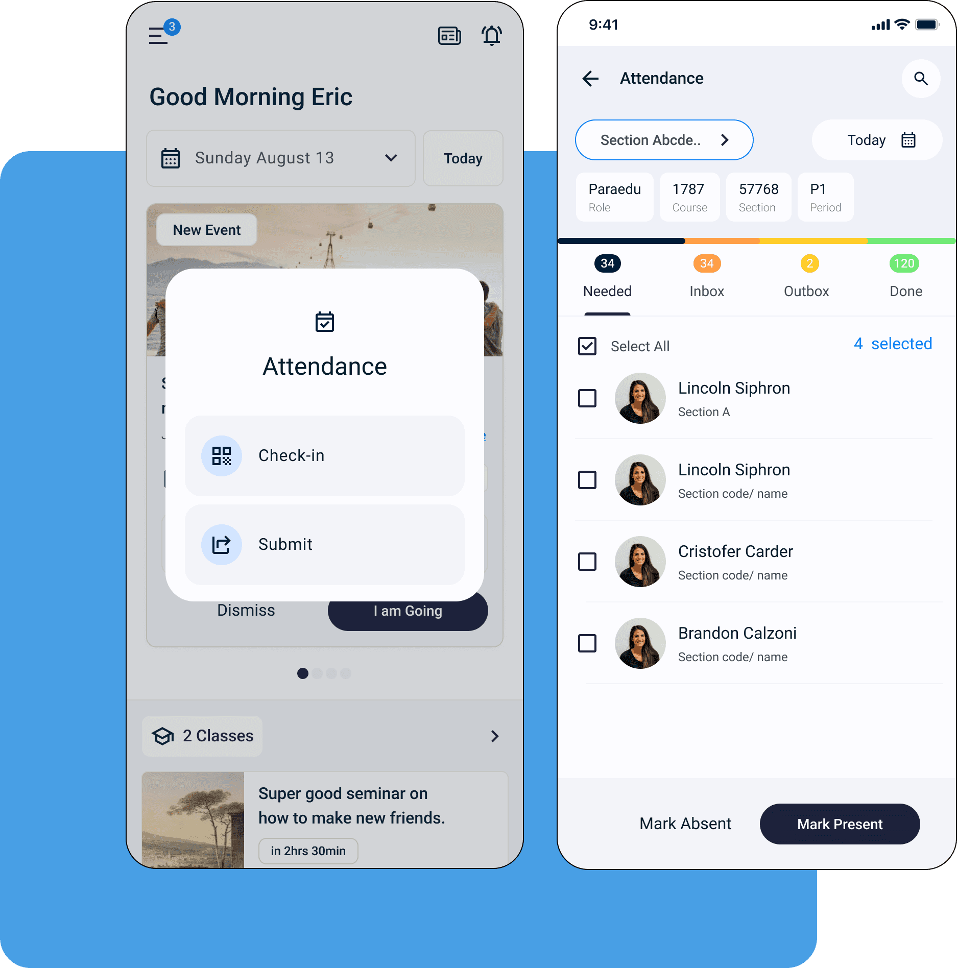 Attendance submit flow for a student