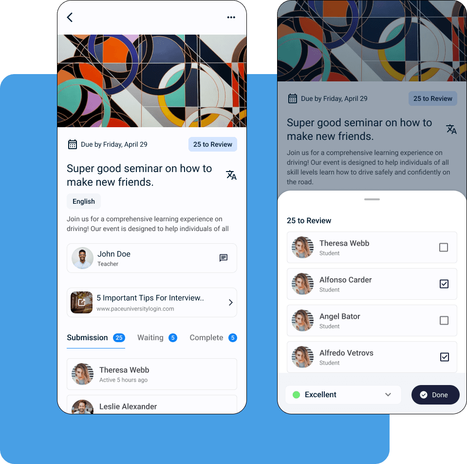 Allows for the assignment and grading of tasks submitted by students.